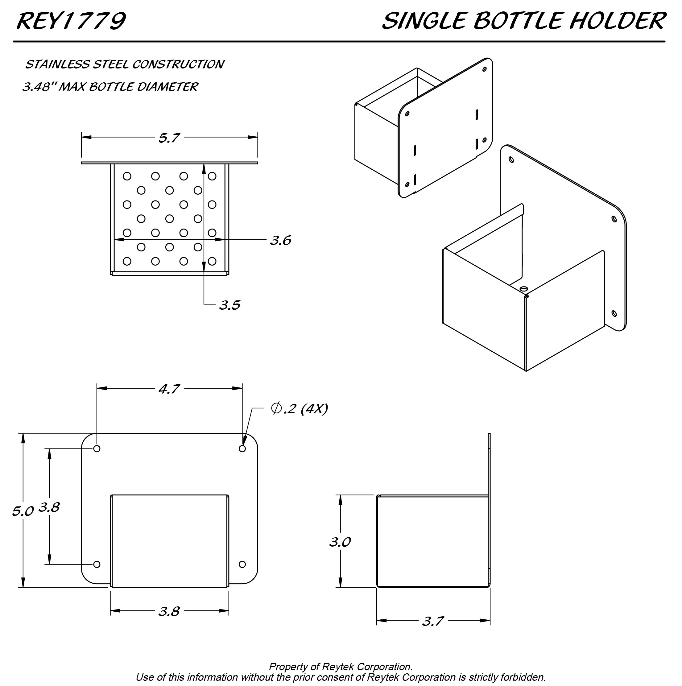 • Holds 1 Bottle 3.48″ dia. max.