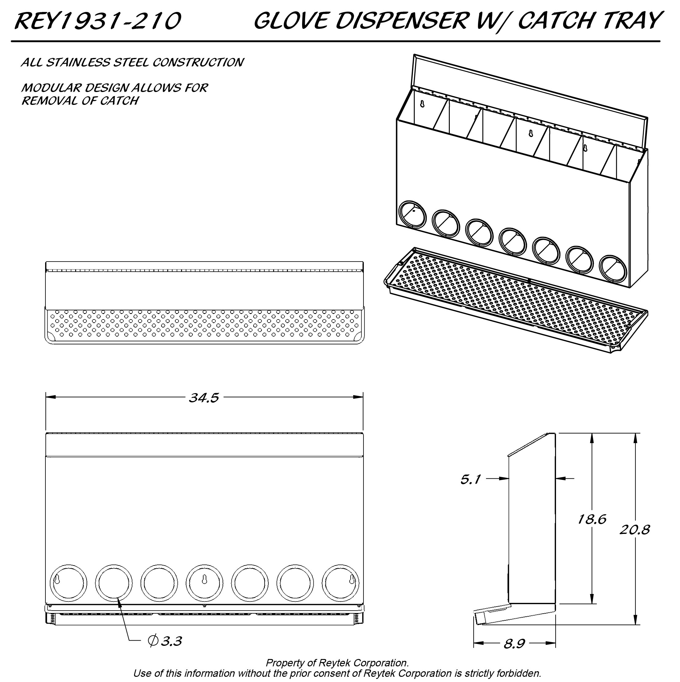Glove Dispenser w/ Catch Tray REY1931
