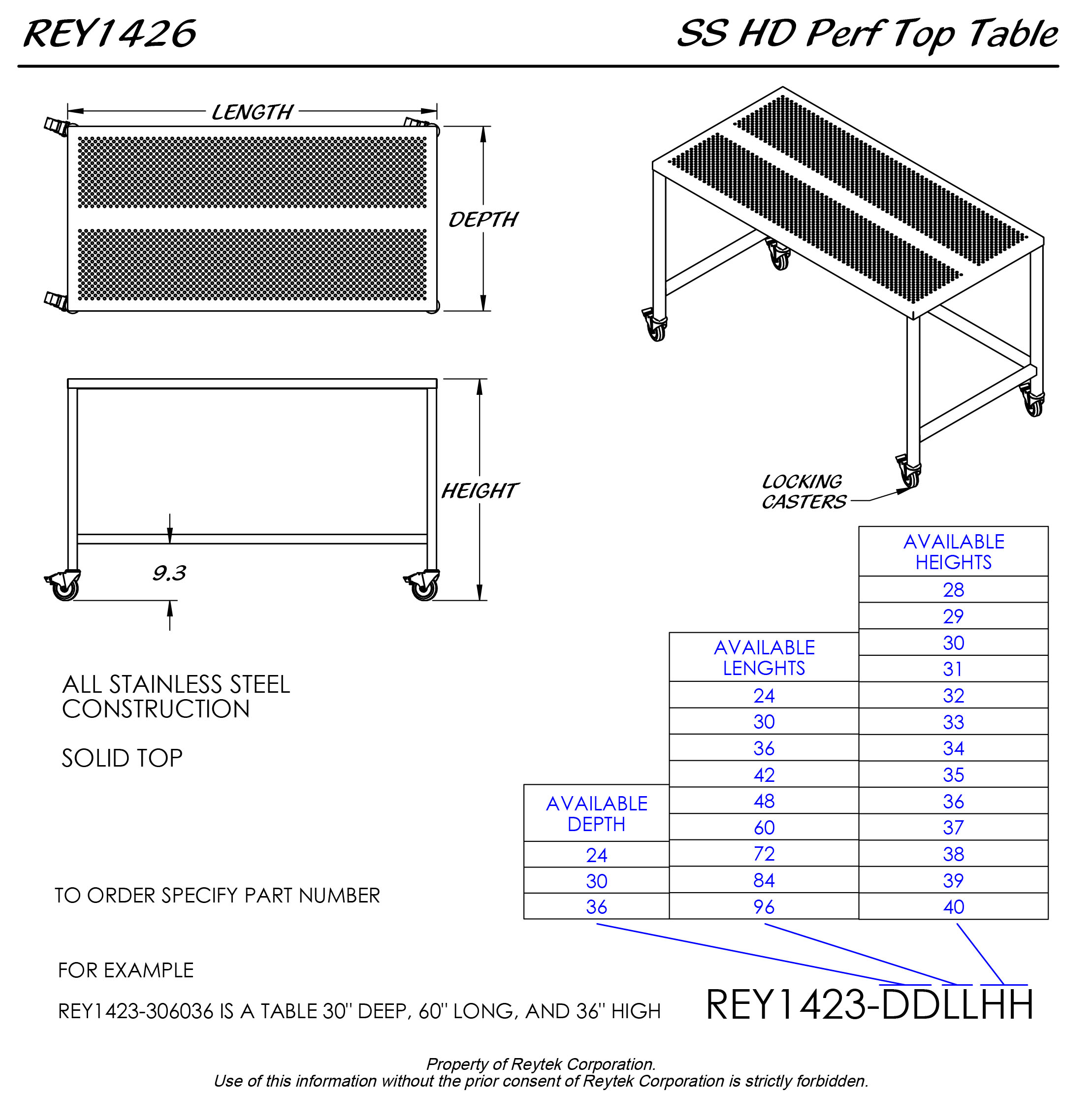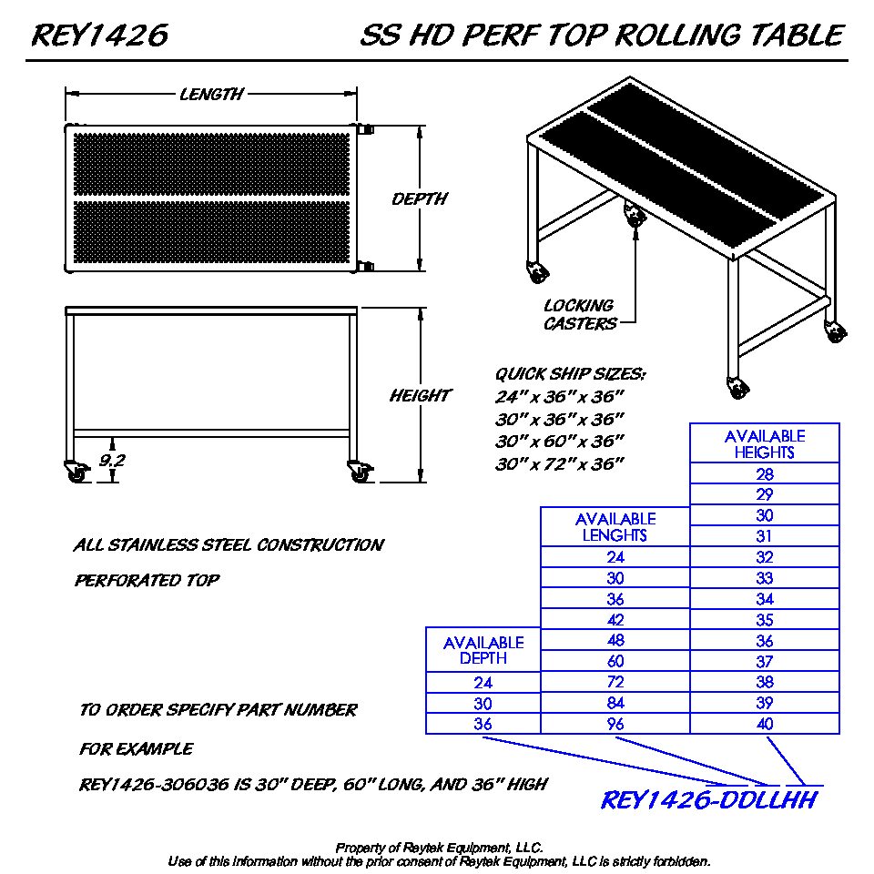 Stainless Table Heavy Duty Perf Top Rolling REY1426